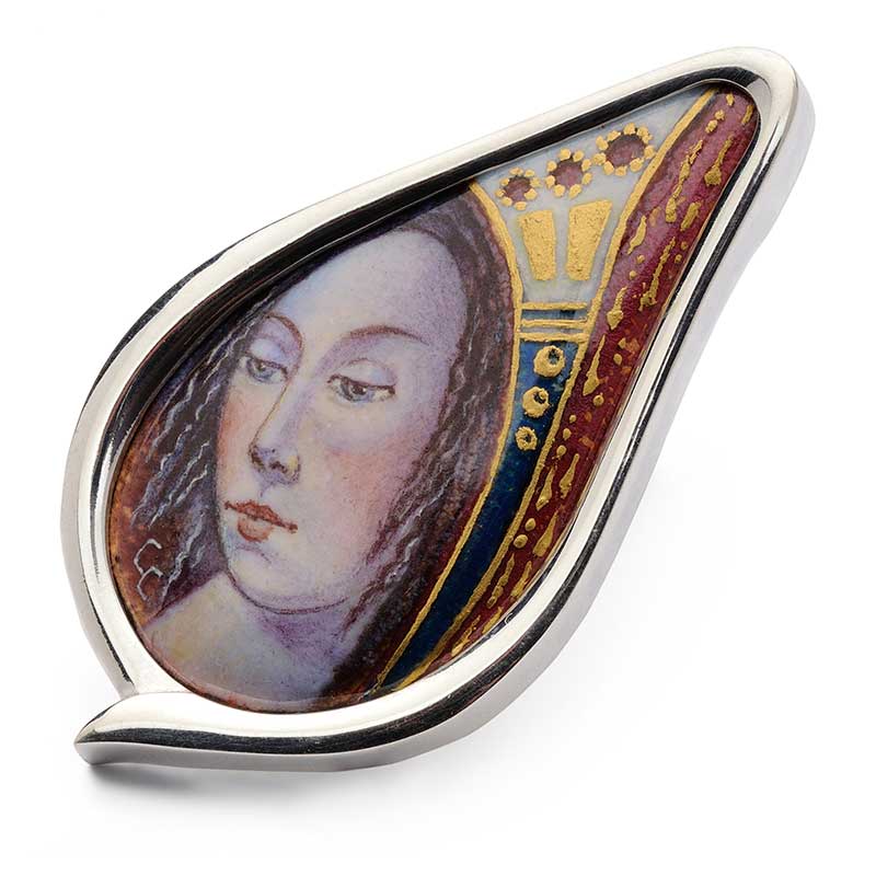 Ceres Pendant, Deas Collection, goddess with a lost gaze, watchman and caretaker of all things linked to the earth, hand painted with the fire enamel technique on copper plate and framed with a 925 Sterling silver bezel. We recommend taking it to As a pendant with a rigid necklace, as close to the neck as possible, but there is the possibility of assembling the piece as a medallion, with a lapel needle. Choose the Goddess that most closely matches your personality, they are unique pieces signed by our enameler.