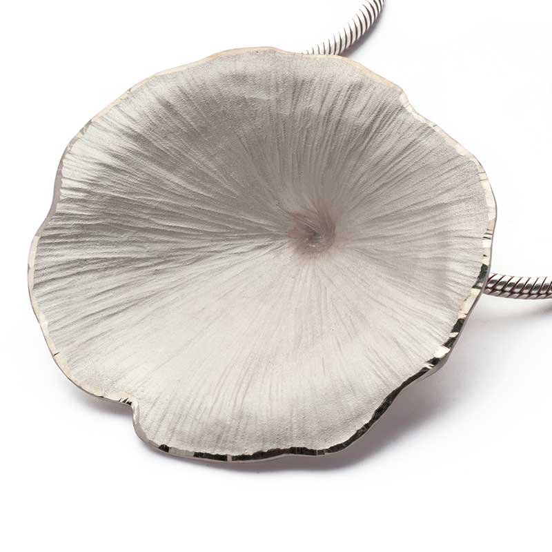 Folium pendant from the Natura Collection. Inspired by the leaves and looking for a powerful relief effect that would give depth to the piece, this pendant arose, to which we made the edges stand out, polished, for a greater sensation of contrast, two sizes, choose the one that best suits your style. We advise you to wear it with a semi-rigid chain so that the pendant remains centered without moving.