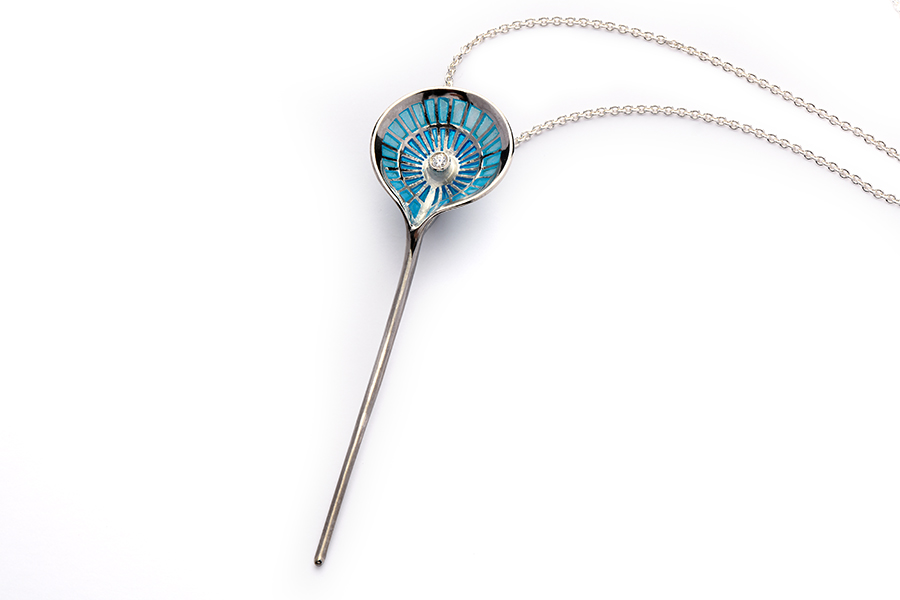 Colgante Cochlea en plata y esmalte, de la colección Aquarium, serie inspirada en las caracolas marinas.